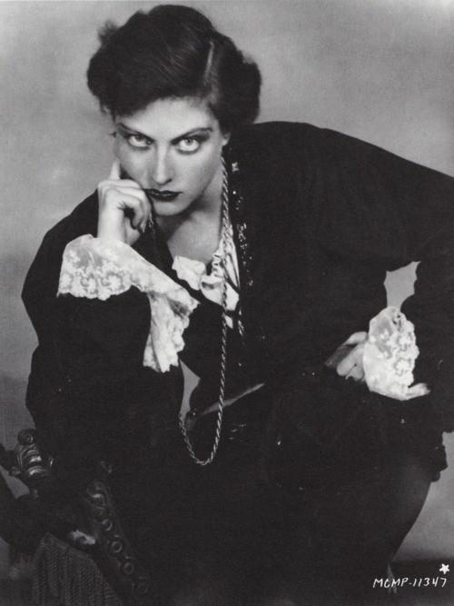 Ruth Harriet Louise, born Ruth Goldstein on this date in 1903, came to Los Angeles at only age 22 and set up a portrait photography studio in the booming Hollywood district where, providentially, rising mogul Louis B. Mayer saw her work and hired her to make stills of his stars. During this era, and decades that followed, posed star photographs were almost as important a part of the Hollywood star apparatus as the films themselves. Movie magazines were devoured by the masses and stars, carefully arranged, dressed, made-up and retouched, were often introduced to audiences by means of these publications, or by movie theater window displays.