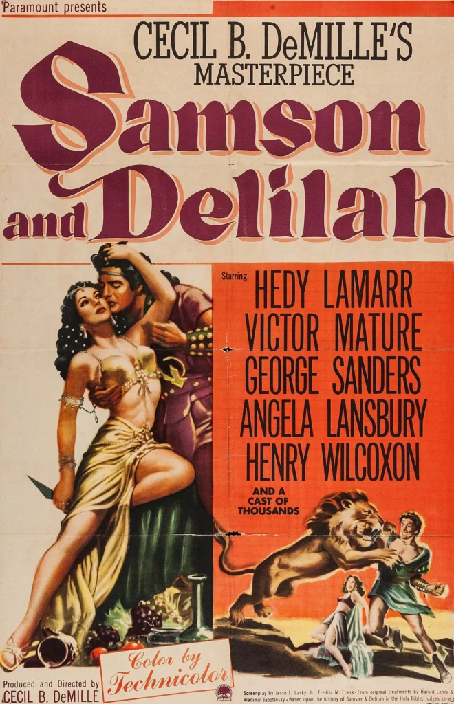 One of Cecil B. DeMille’s biggest films, and a gigantic hit and critical success. Also, a completely bizarre pageant of sex, violence, and bad taste under the cover of its biblical precedent. Thrill to Hedy Lamarr as a slinky, sexy, whip-wielding Delilah and Victor Mature as a musclebound Samson who kills an army — gorily — with the jawbone of an ass. DeMille fills the frame with color and expensive sets. Never less than entertaining.